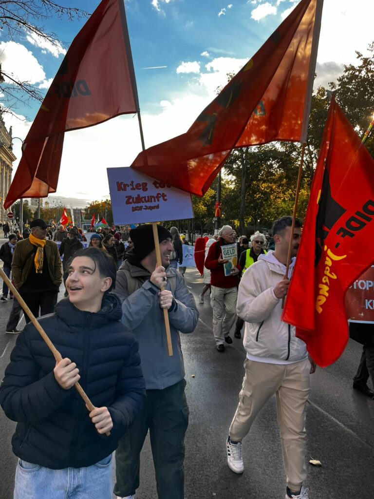 Avusturya’nın başkenti Viyana bugün büyük bir barış yürüyüşüne sahne oldu. Binlerce emekçi, öğrenci, göçmen ve barış savunucusu, Avusturya’nın askeri ittifaklardan uzak durması ve tarafsızlığını koruması talebiyle yürüdü.