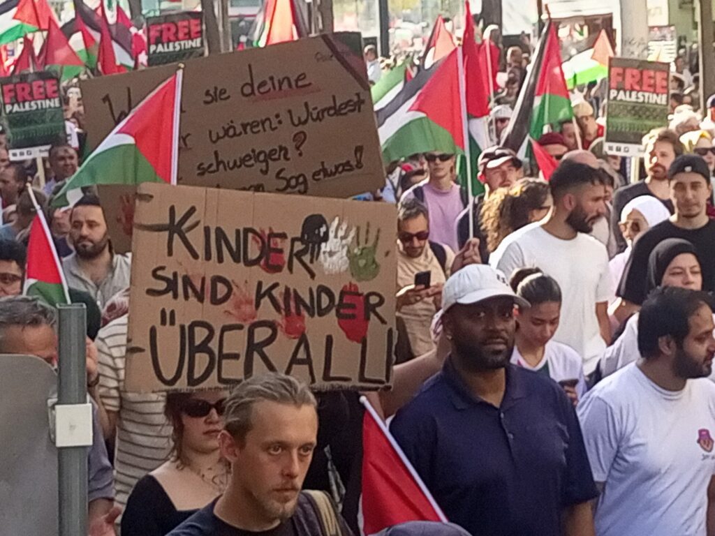Christian-Broda-Platz’da başlayan ve Mariahilferstraße boyunca devam eden yürüyüşte, “Özgür Filistin!”, “İsrail’i boykot et!”, “Yaşasın enternasyonal dayanışma!”, “Katliama dur de!” sloganları yankılandı. Yürüyüş boyunca binlerce kişi ellerinde Filistin bayraklarıyla taleplerini haykırdı.