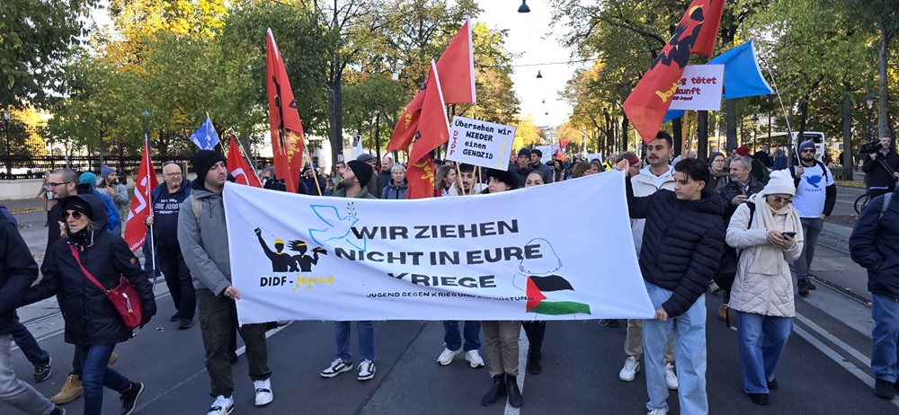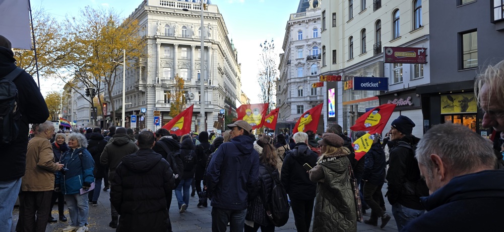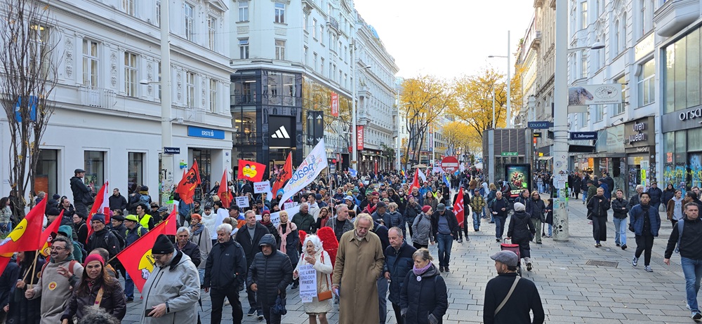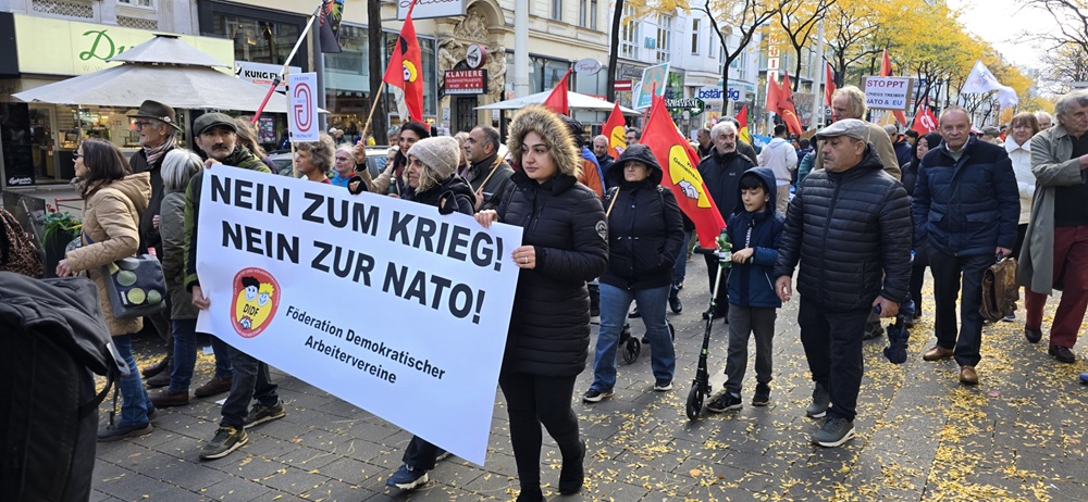 Avusturya’nın başkenti Viyana bugün büyük bir barış yürüyüşüne sahne oldu. Binlerce emekçi, öğrenci, göçmen ve barış savunucusu, Avusturya’nın askeri ittifaklardan uzak durması ve tarafsızlığını koruması talebiyle yürüdü.